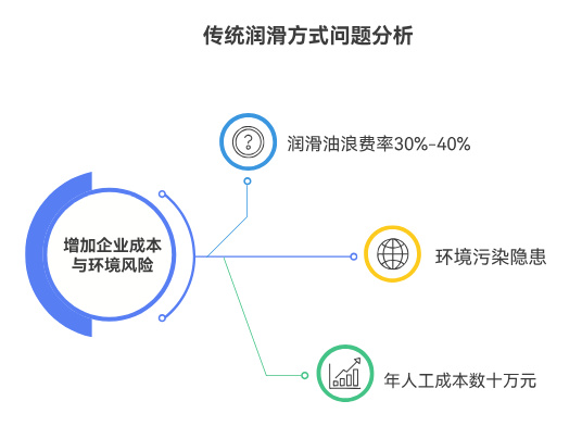 传统润滑方式往往采用定期换油的策略,无论设备实际的润滑需求如何,都按照固定的时间间隔进行润滑油或润滑脂的更换。这种方式虽然简单直接,但却造成了大量的耗材浪费。例如,在一些大型机械设备中,定期更换的润滑油可能在实际使用中并未完全达到性能极限,仍具备一定的润滑能力,但由于既定的更换周期,不得不被废弃。据统计,在某些行业中,因定期换油导致的润滑油浪费率可高达 30% - 40%,这无疑增加了企业的生产成本。