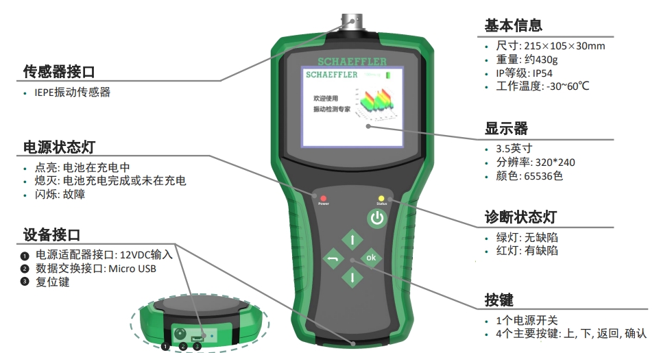 传感器:标配 IEPE 振动传感器(100mV/g),支持磁座固定。